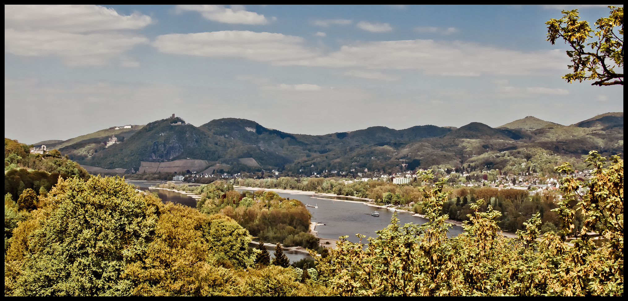 Der Rhein (zwischen Königswinter und Bad Honnef), das Siebengebirge mit Drachenfels und