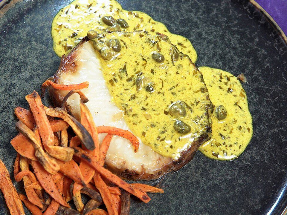 Instructions. Add butter, shallot, garlic, anchovy, curry powder, cayenne, mustard powder and salt in a saucepan. Cook over medium heat for about 6 minutes until the shallots soften and butter becomes golden colour. Add the capers and the herbs and grind of fresh pepper. Cook one minute more.