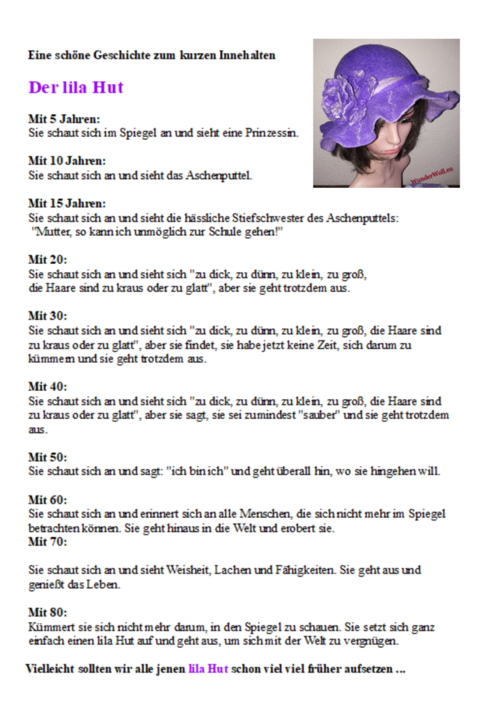 Mich haben immer so Sprüche begleitet wie: Lila ist die Farbe der unbefriedigten Frau. Naja so habe ich mich aber nie gefühlt. Und selbst wenn, hätte ich das eher mit schwarz ausgedrückt. Ich kontere meistens mit einem: Lila schützt vor ungewollten Schwangerschaften. Mein Schlafzimmer ist lila gestrichen und ich war noch nie ungewollt.