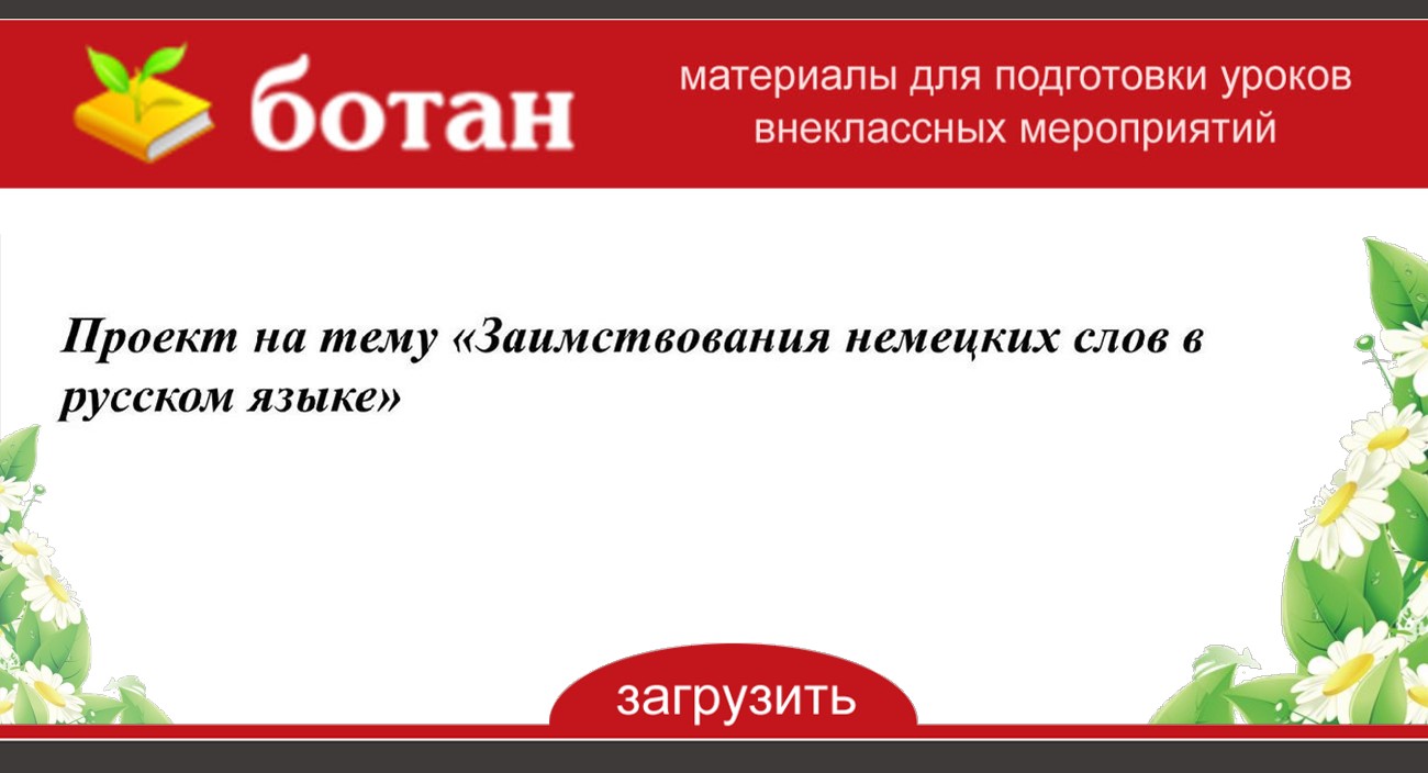 Проект на тему «Заимствования немецких слов в русском языке» БОТАН