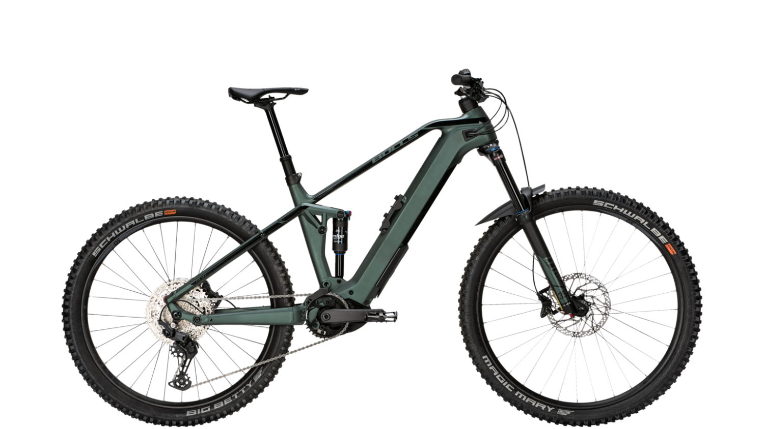 The BULLS SONIC EVO AM 6 Carbon with its striking shape and beautifully integrated Bosch Performance CX motor has a svelte black look looks good just standing there. With a carbon frame and internal 625 Wh battery, the Sonic tops the scales at 23.06 kg. The battery is very easy to remove by pulling it up and to the left.
