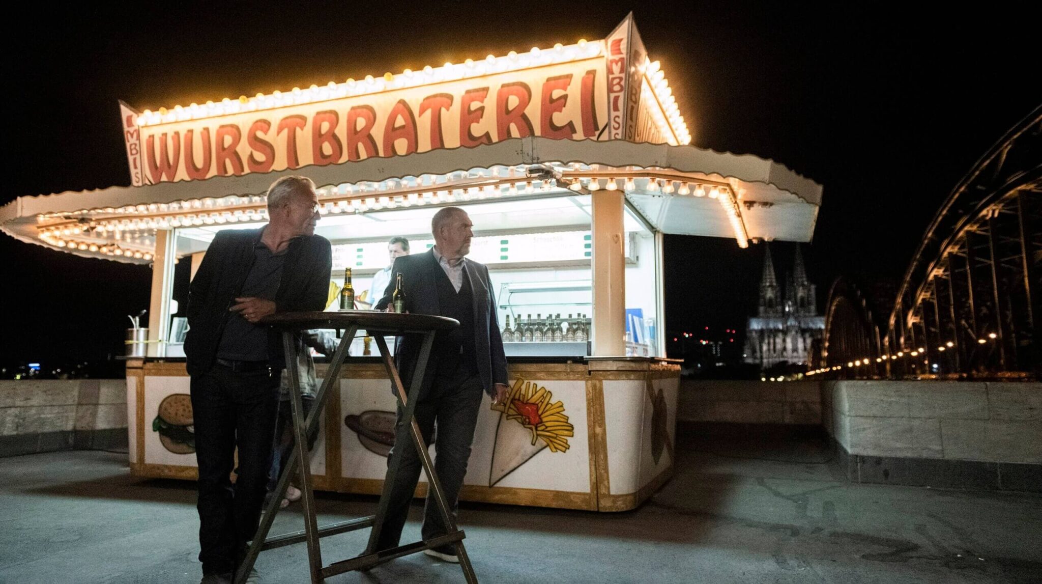 An einer überdachten Stelle am Rheinufer wurde eine obdachlose Frau getötet: Die Kommissare Max Ballauf und Freddy Schenk kommen am Tatort an.