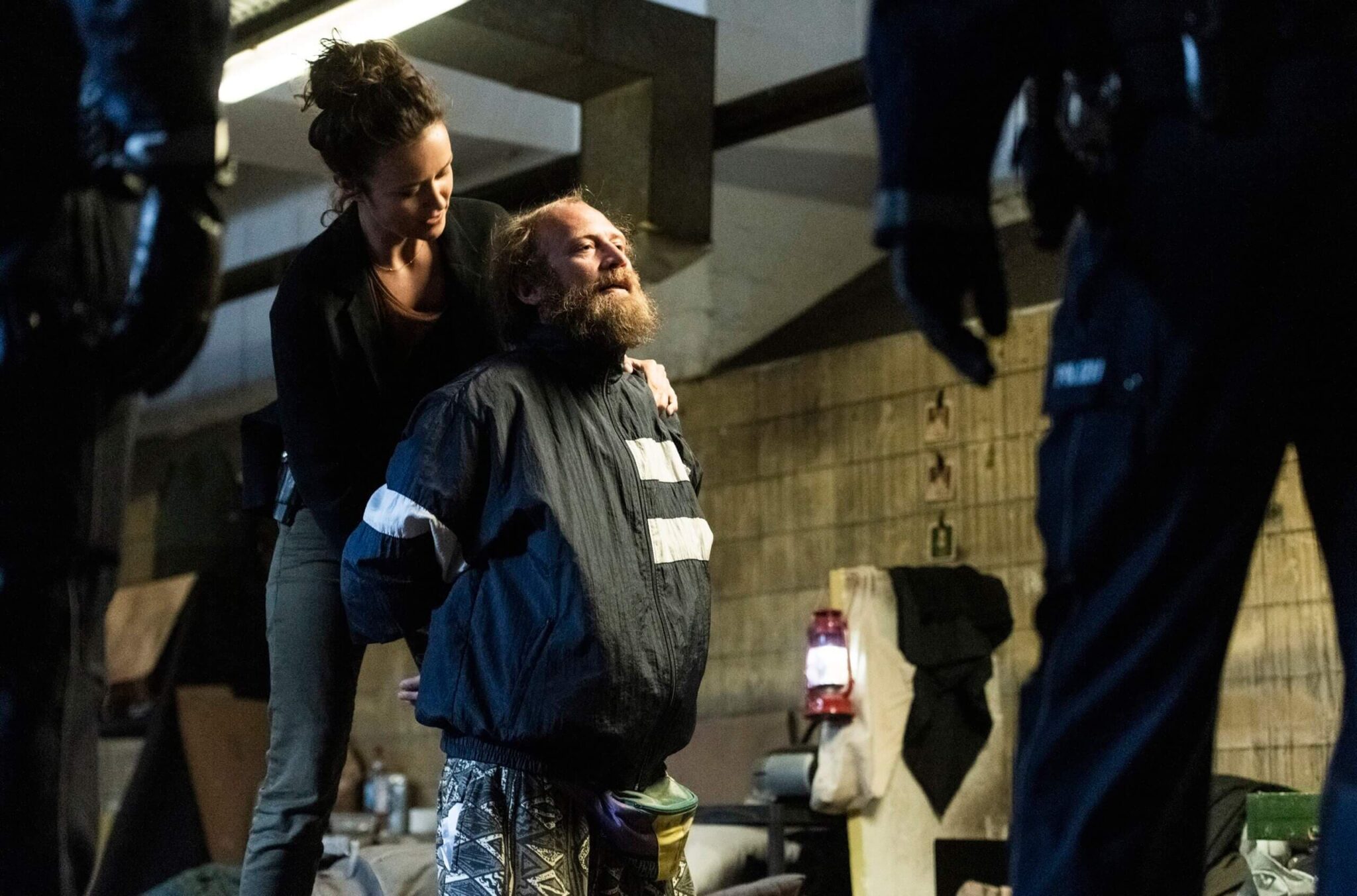 Fernsehfilm Deutschland 2021. Ella flieht vor ihrem gewalttätigen Ehemann und versucht, ohne Geld und ohne Freunde unterzutauchen. Die obdachlose Monika nimmt Ella unter ihre Fittiche und zeigt.