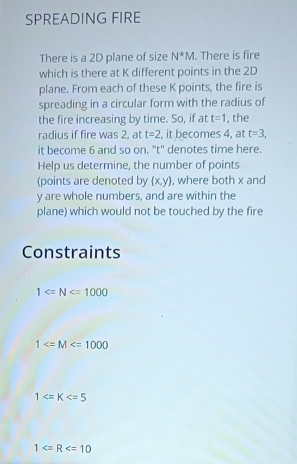 Solved SPREADING FIRE There is a 2D plane of size N∗M. There
