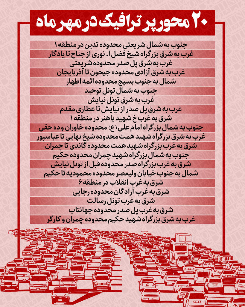 اینفوگرافیک گرههای ترافیکی تهران را بشناسید/۲۰ مسیری که بهتر است فردا از آنجا عبور نکنید